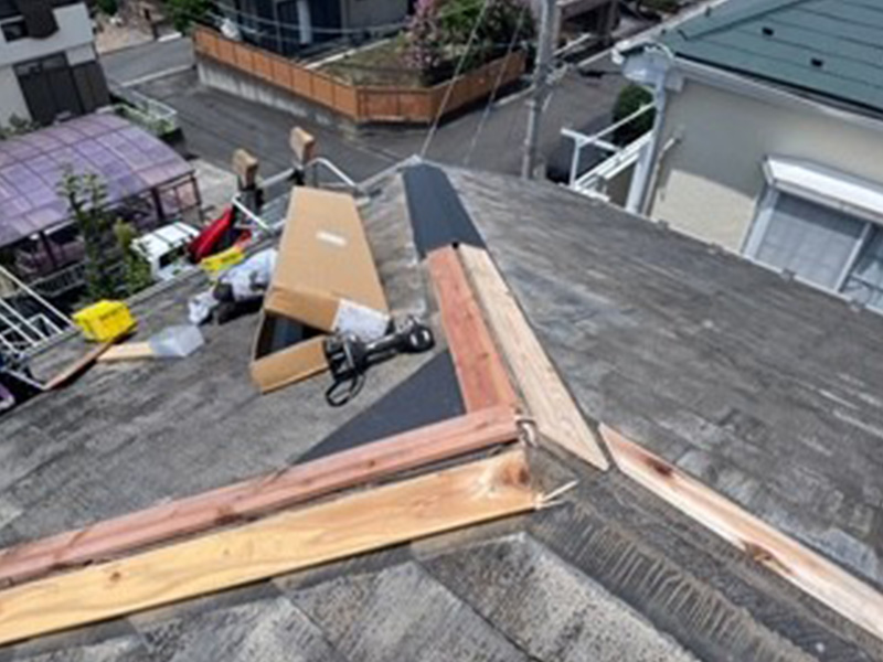 屋根の頂部をしっかり固定し雨漏りを防ぎます。