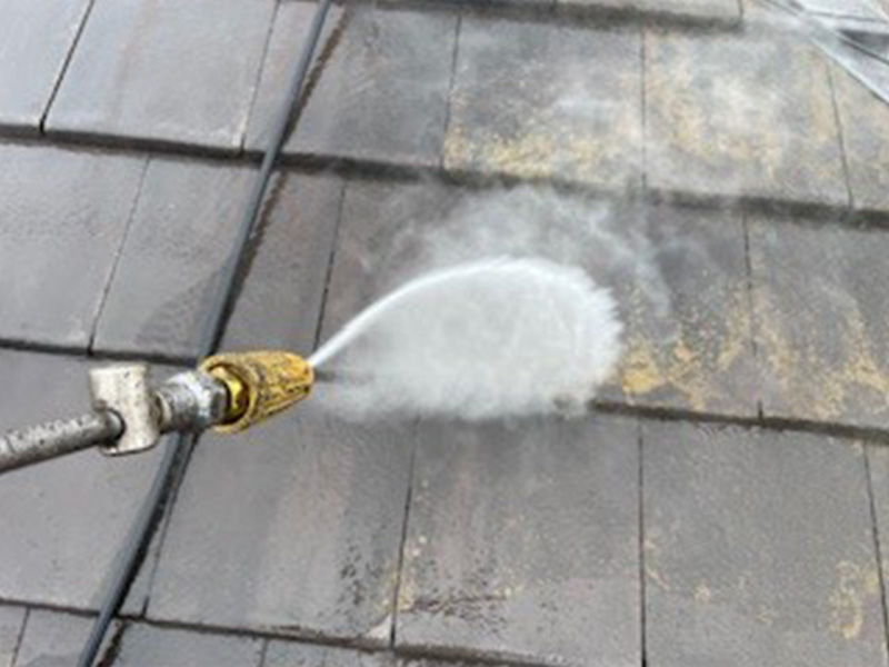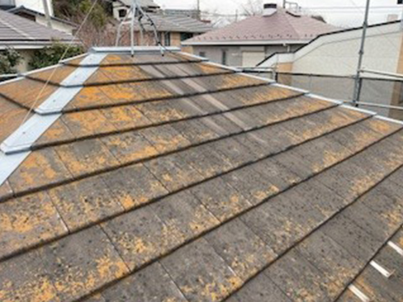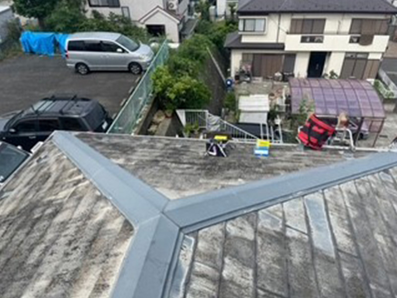 屋根材の状態を確認し、耐久性を重視した塗装を行います。
