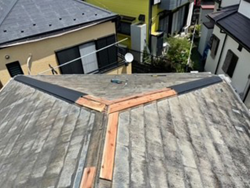 屋根の頂部をしっかり固定し雨漏りを防ぎます。